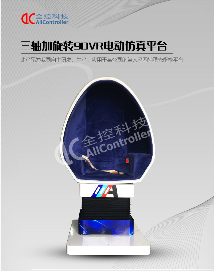 1.三自由度運動平臺 2.蛋殼座椅(動感互動倉) 3.電氣控制箱 4.控制軟件5.VR眼鏡(選配) 6.電腦 7.其他配件