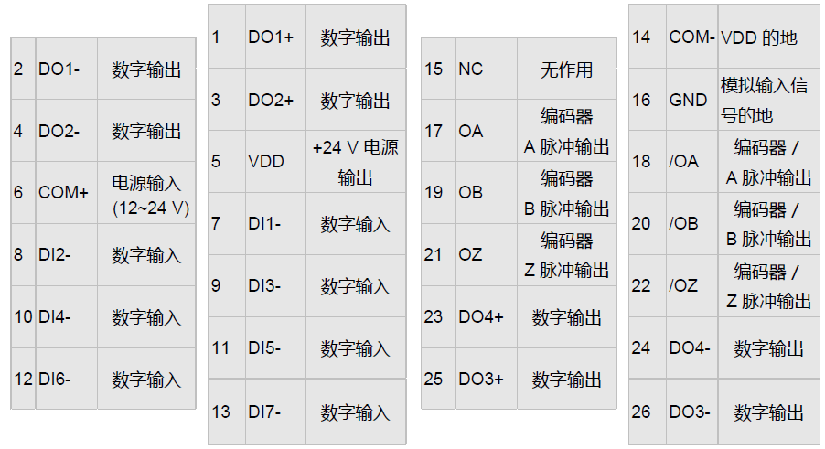 2. 關于負極回路部分:14腳(COM-)和16腳(GND)需要短接起來。如果使用抱閘時,應將2腳(DO1-)也一同短接起來。